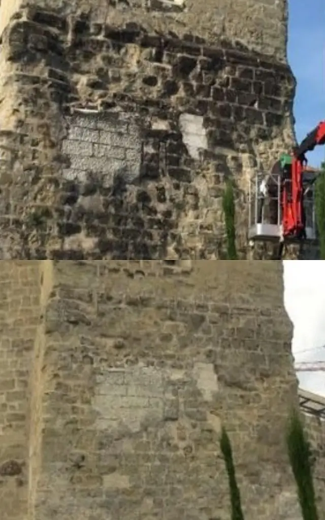 Le microgommage a été utilisé sur les parties les plus fragiles et les détails architecturaux, tandis que le sablage doux a traité les surfaces plus résistantes de la tour. Chaque zone a reçu un traitement sur mesure.